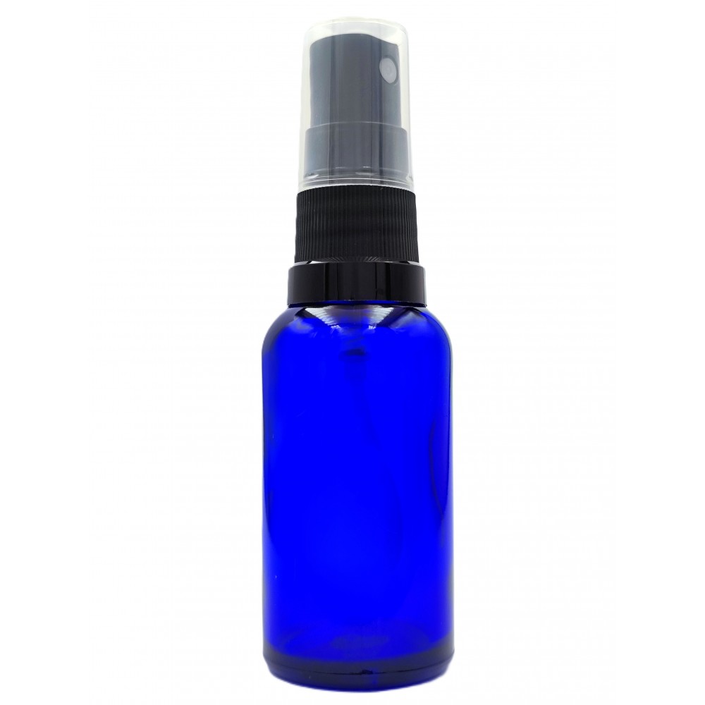 Butelka szklana niebieska z ATOMIZEREM czarnym 30ml