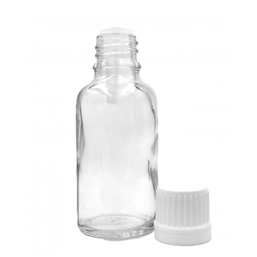 Butelka szklana bezbarwna z KROPLOMIERZEM białym 30ml