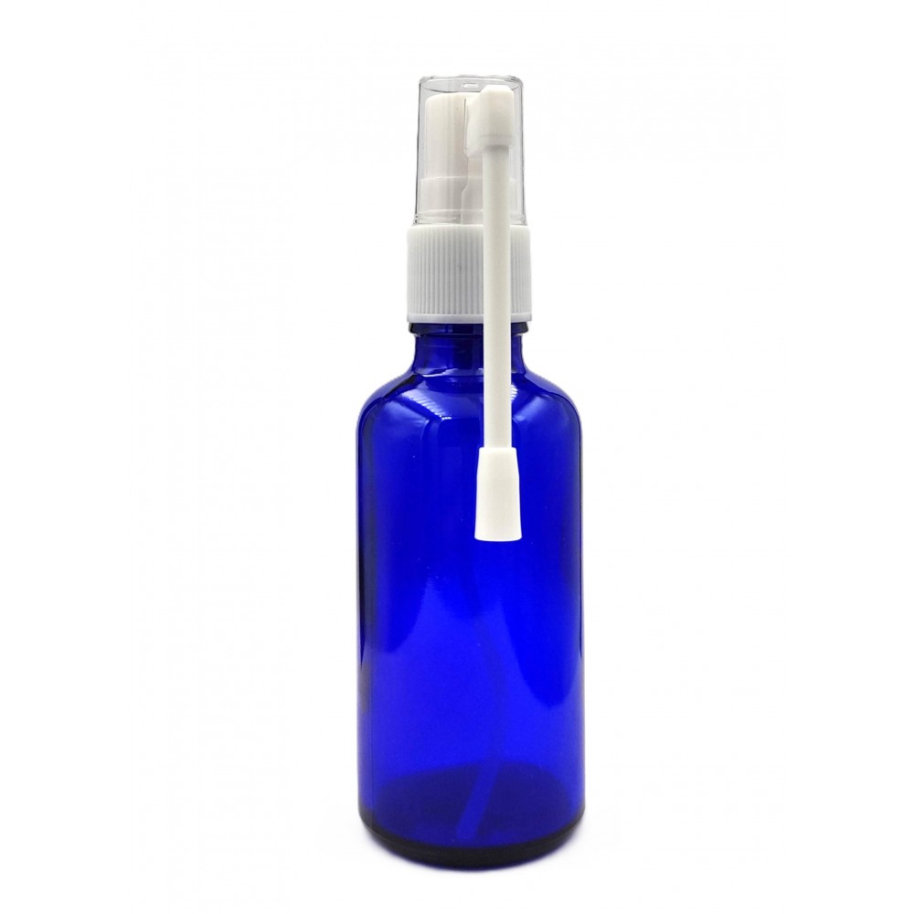 Butelka szklana niebieska z atomizerem do gardła spray 50ml