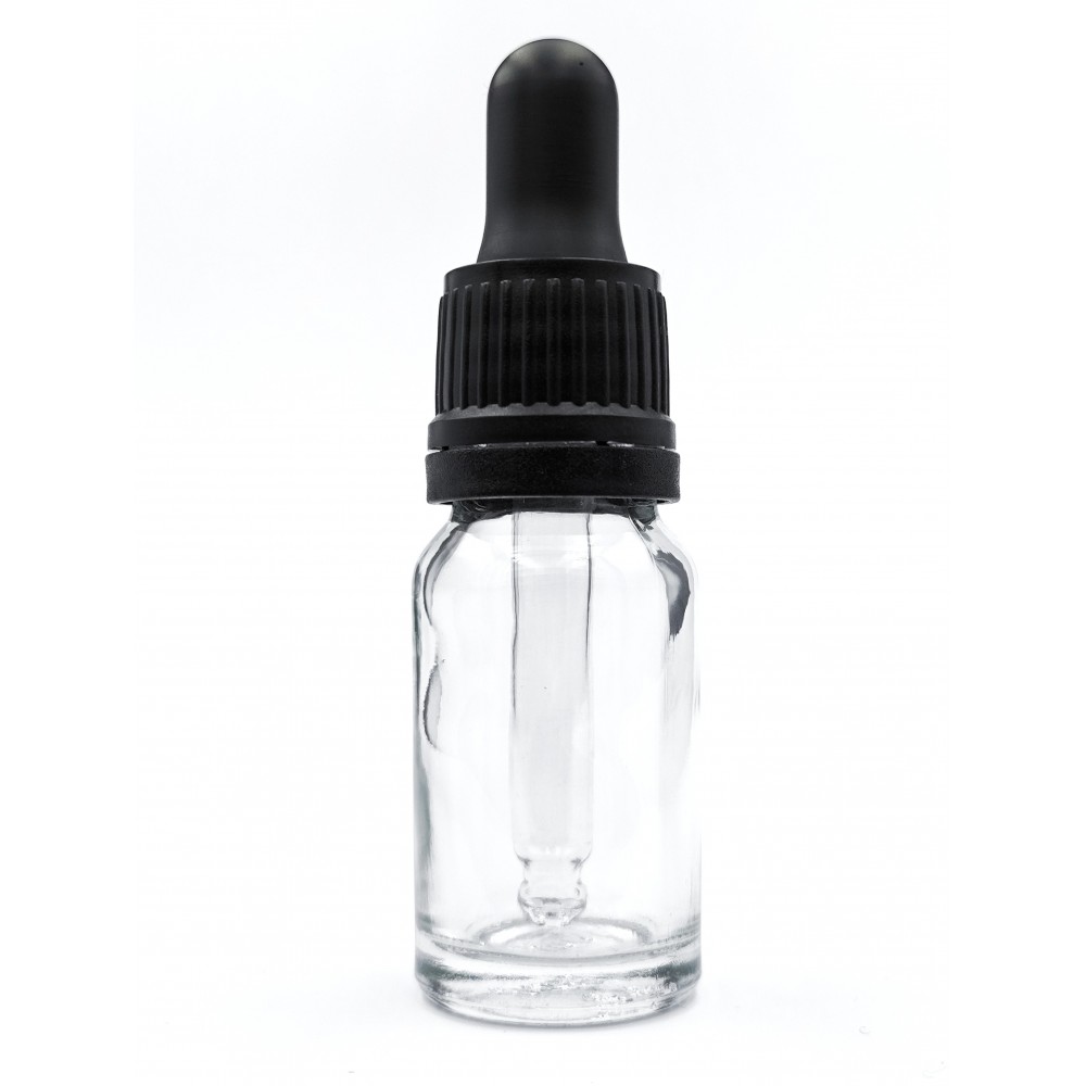 Buteleczka szklana o pojemności 10ml z pipetką szklaną i nakrętką w kolorze czarnym