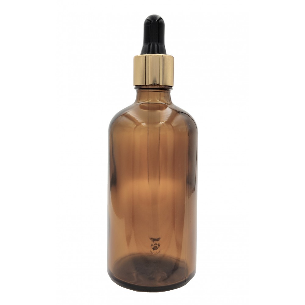 Butelka szklana brązowa z PIPETĄ złotą zakraplacz 100ml
